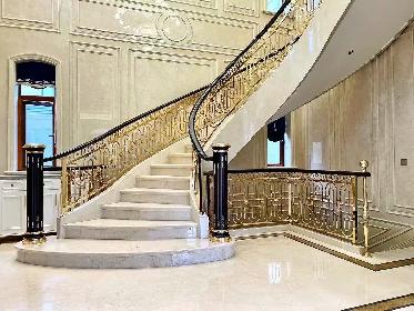 豪華銅樓梯室內(nèi)樓梯:在別墅的樓梯間安裝銅欄桿,既安全又能提升室內(nèi)的豪華感。陽臺和露臺:在陽臺或露臺上 ..
